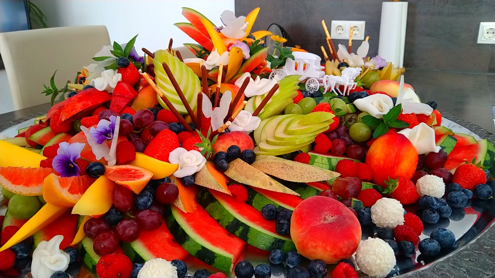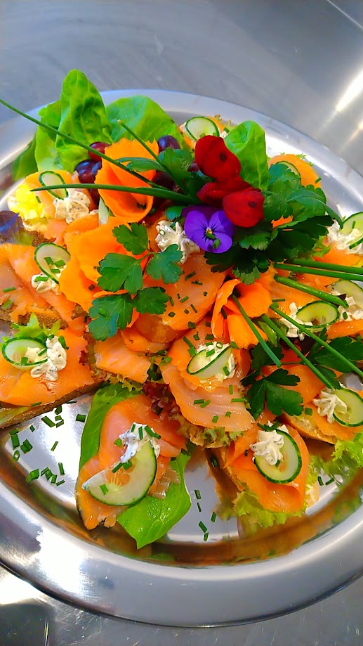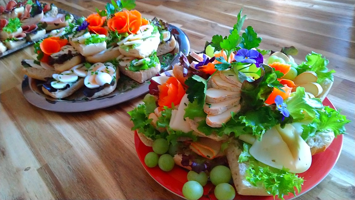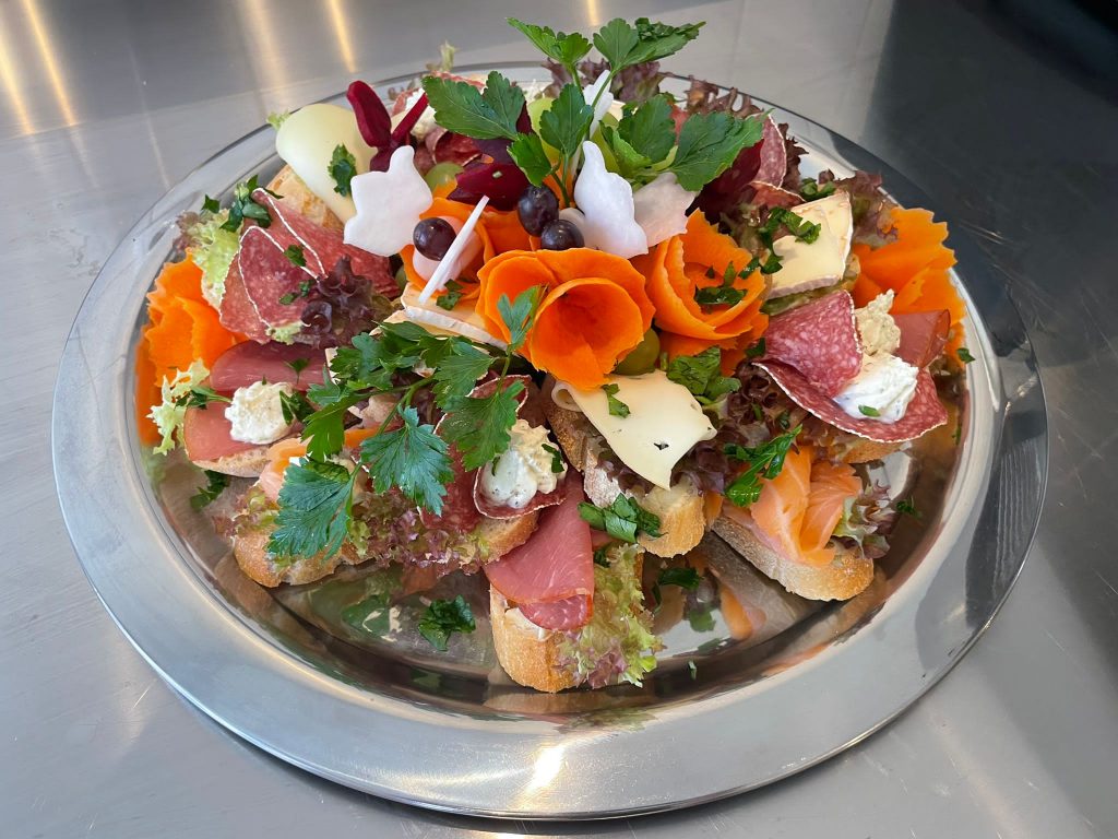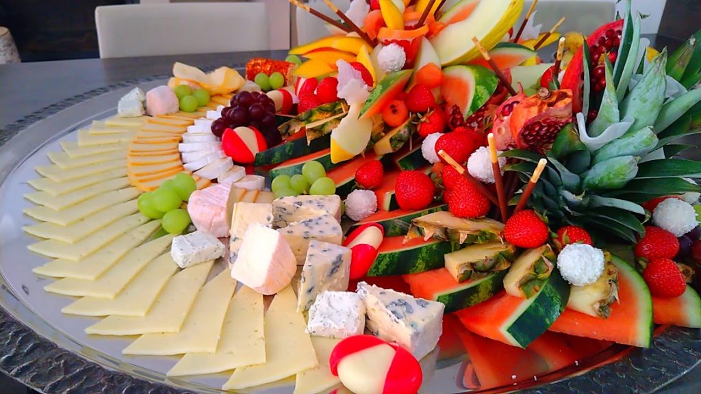 Käseplatte, Fischplatte, Obstplatte, gefüllte Eier, kalte Bratenplatte, Mozzarella – Tomatenplatte, Canapés belegt nach Wunsch, Belegte Brötchen, Fingerfood, Dessert